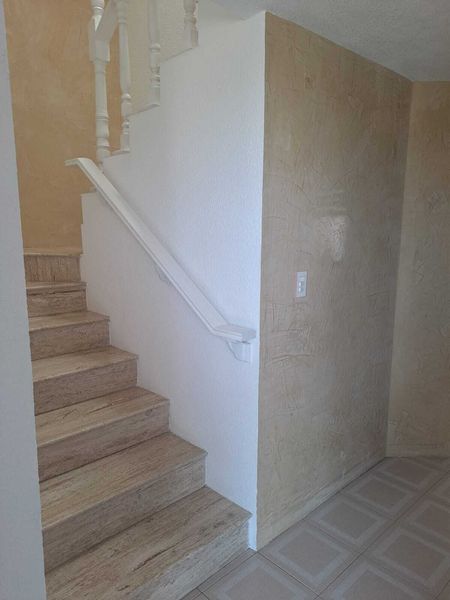 Elegante escalera de mármol con barandales de madera